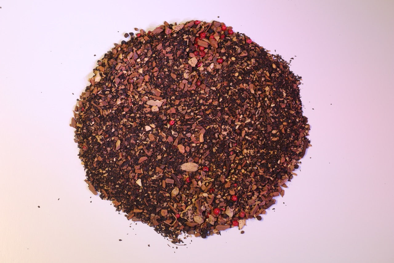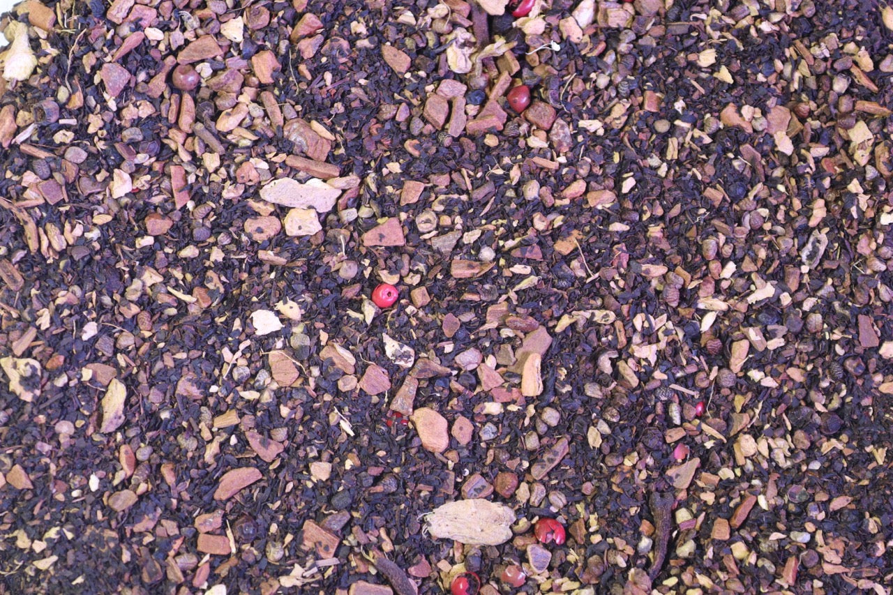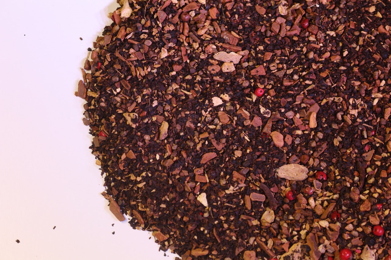 Ingredients: Black tea, ginger, cinnamon, cardamom, cloves, pepper