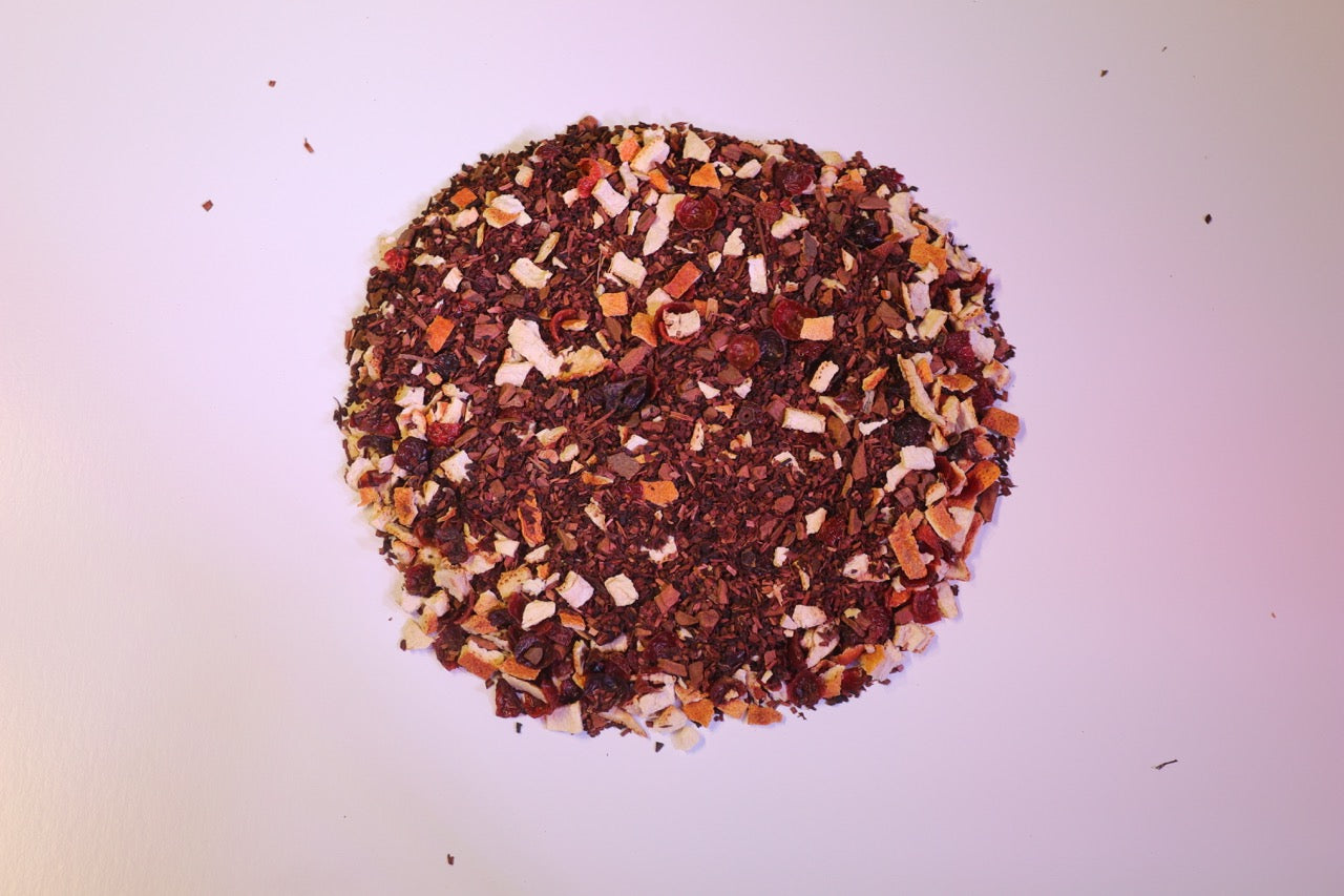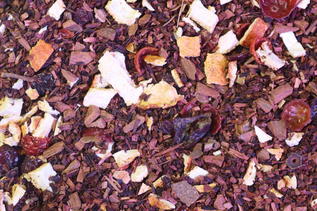 Ingredients: Red tea, orange peel, rosehips, cinnamon, wild cherry bark